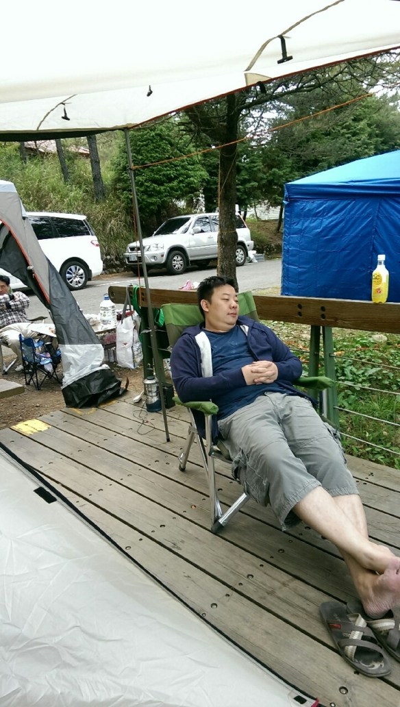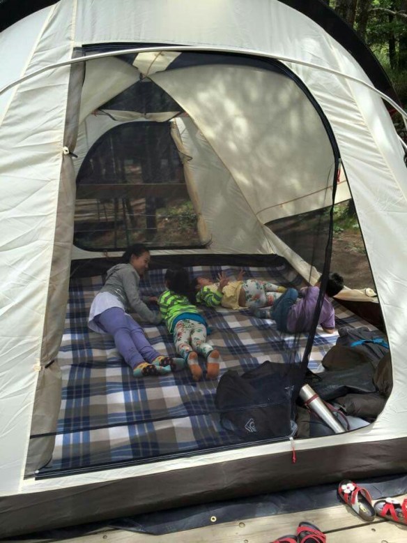 你看看有多幸福!! 搭個帳篷 還有四個人來幫忙…..