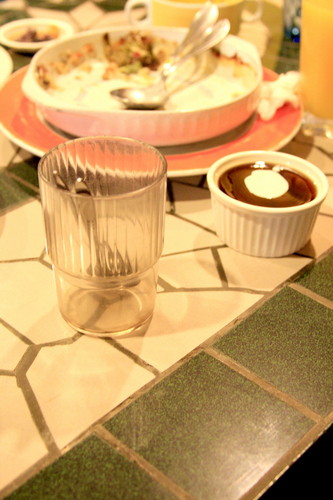 甜點是不好吃的茶凍+很爛杯子裝的湯匙