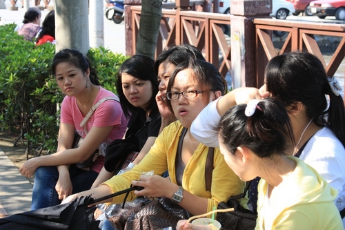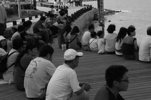 到處都是坐在海邊吹風休息的人!!怎麼會這麼多人隨便坐呢?