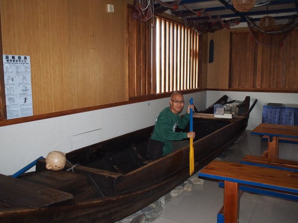 導覽員也積極的介紹相關的知識,捕魚的大網到小網~利用水流船速產生水牆